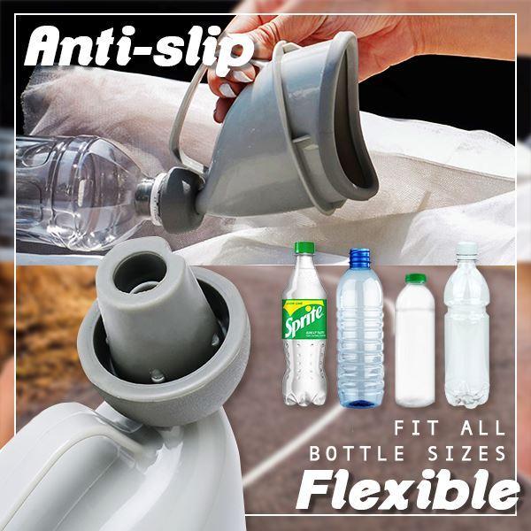 Simply use the pocket toilet with any bottle universally– We offer a detachable, flexible connector for wider bottlenecks, you can also remove it to precisely work with smaller bottles.